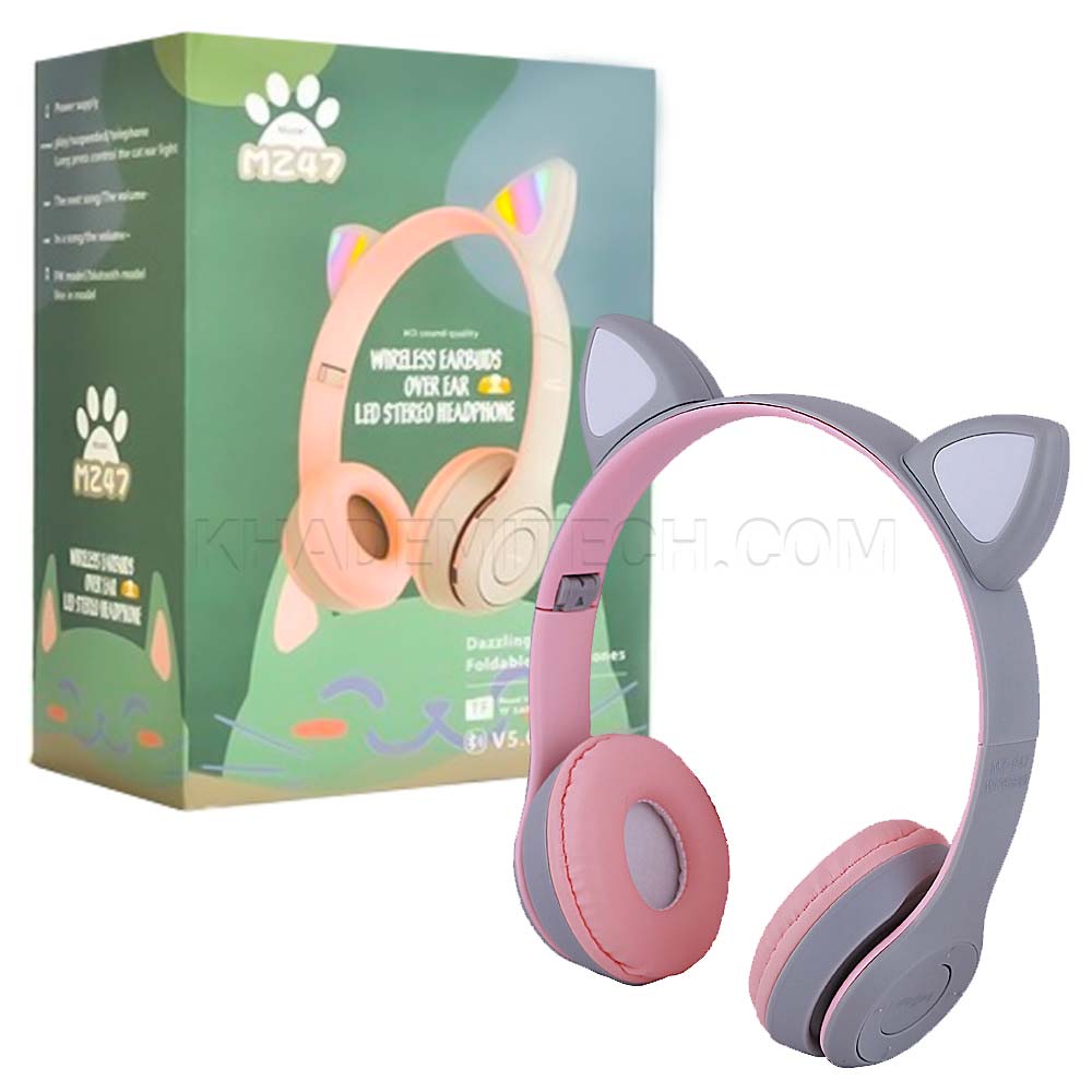 هدست بلوتوثی رم خور مدل MZ47 گربه ای طوسی صورتی۴۰۰٬۰۰۰ تومان