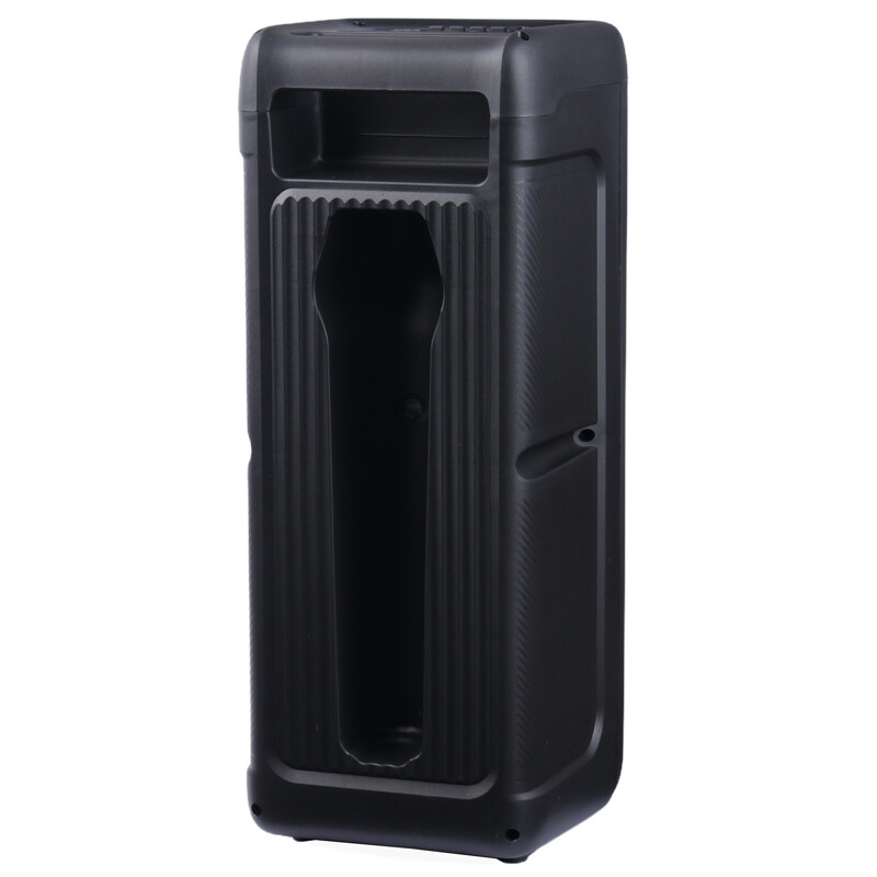 جنس بدنه ساخته شده از پلاستیک مقاوم، برخوردار از دسته جهت سهولت حمل، فضای قرارگیری میکروفون در پشت بدنه و استند قرارگیری موبایل