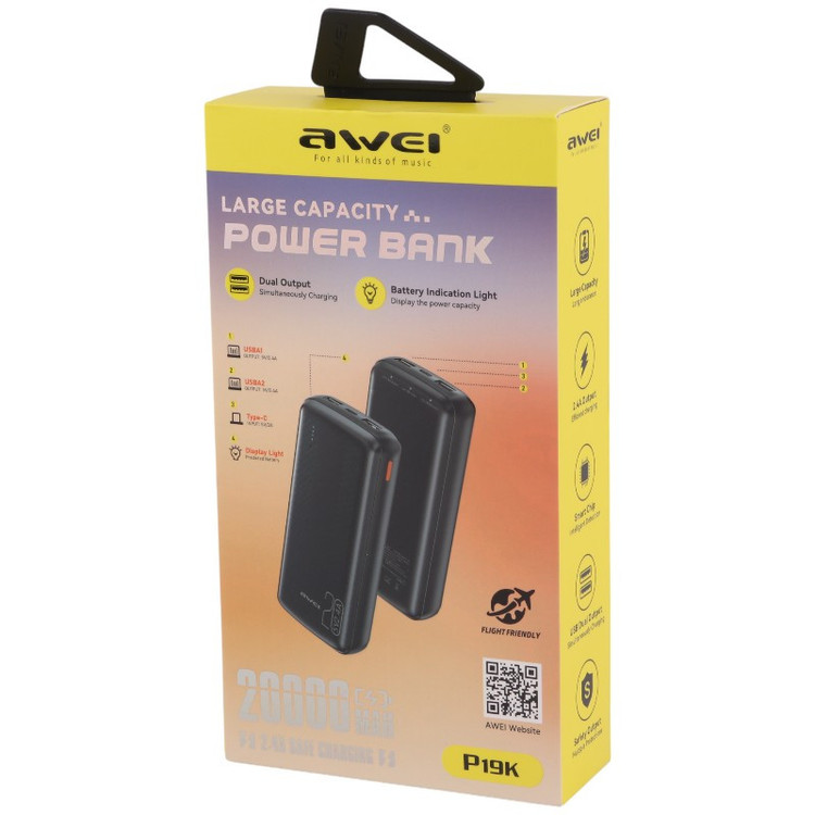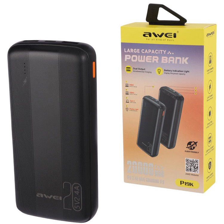 پاور بانک فست شارژ 20000 اوی Awei P19K 2.4A 12W