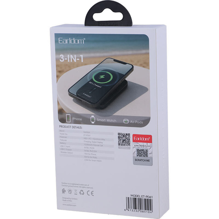 شارژر همراه وایرلس Earldom مدل ET-PD61 ظرفیت 10000 میلی آمپر ساعت با توان خروجی 20 وات