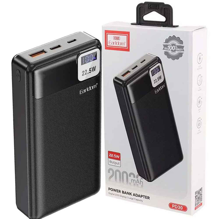 پاوربانک ارلدام مدل ET-PD30 ظرفیت 20000 میلی آمپر ساعت