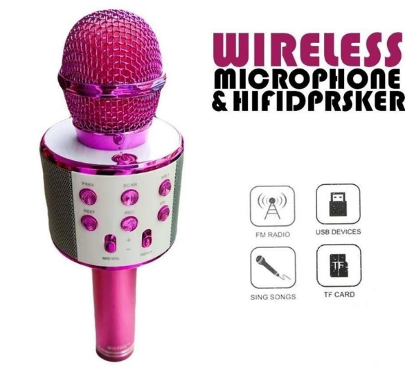 میکروفون اسپیکر مدل WS-858 یک میکروفون همه کاره با قابلیت اتصال بی سیم (بلوتوثی) و باسیم به تلفن های هوشمند اندروید و IOS ، انواع پلیرها و کامپیوتر می باشد. این دستگاه از جنس بهترین مواد ABS و آلومینیوم ساخته شده است . به طور خلاصه می توان امکانات این میکروفون را به این صورت نام برد: بلوتوث نسخه 3, ,ورودی حافظه فلش یا USB ، شیار مخصوص به کارت حافظه، دارای پورت AUX، باتری لیتیومی قابل شارژ ، رادیو، دکمه های تنظیم صدا، ضبط صدا، کارائوکه، 4 حالت تغییر صدا , اسپیکر های قدرتمند و ....