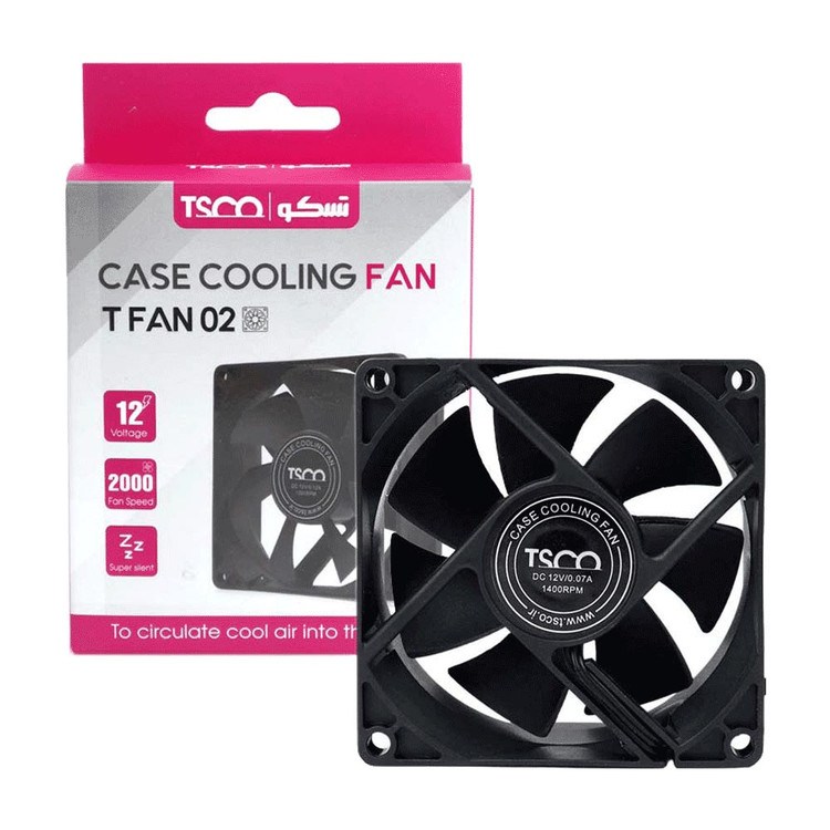 خنک کننده داخل کیس 8x8 تسکو مدل T Fan 02 کاملا بی صدا بوده و با کاهش دمای قطعات داخلی موجب افزایش عمر آن ها و بهبود عملکردشان می شود. سرعت فن موجود در این خنک کننده 2000 دور بر دقیقه بوده و ولتاژ آن 12 ولت می باشد.
