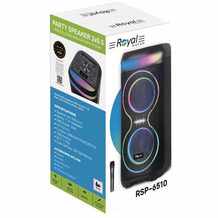 اسپیکر بلوتوثی قابل حمل Royal مدل RSP-6510 همراه با میکروفون و ریموت کنترل