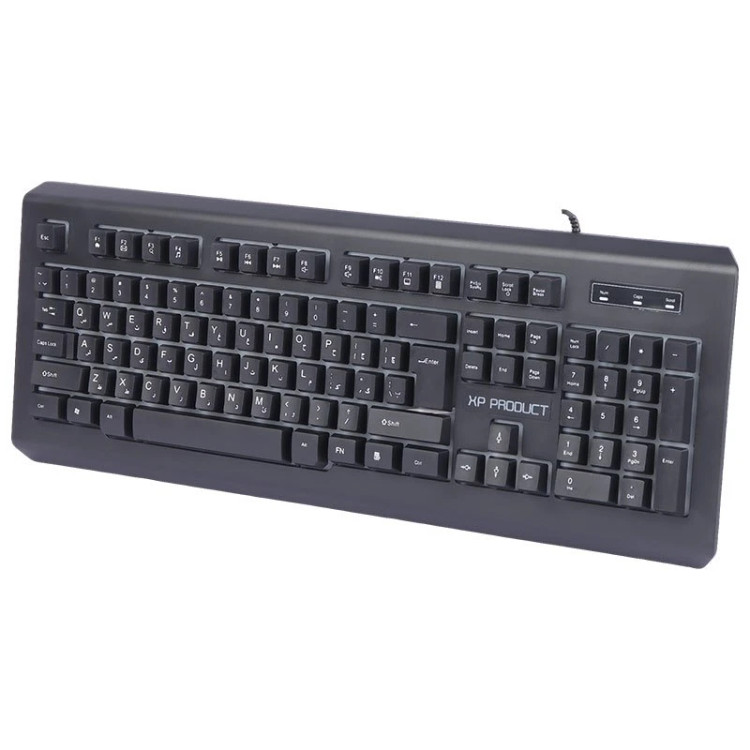 کیبورد با سیم مخصوص بازی ایکس پی پروداکت مدل XP-10100 یک مدل بسیار با کیفیت است که نحوه اتصال آن با سیم از طریق کابل متصل با رابط USB به طول تقریبی 140 سانتی متر با روکش پلاستیک است و بدنه ساخته شده از جنس پلاستیک مقاوم در برابر فشار و ضربه، دارای طول عمر 5 میلیون بار کلیک میباشد که مقدار بسیار فوقالعاده ای میباشد. این کیبورد دارای طراحی ارگونومیک جهت جلوگیری از خستگی دست میباشد و ، مقاوم در برابر نفوذ آب به داخل کیبورد است و برخوردار از 104 عدد کلید فیزیکی و حروف فارسی حک شده، با کلید های مولتی مدیا و FN میباشد کیبورد گیمینگ XP-Product XP-10100 دارای پس زمینه با نورپردازی RGB جهت ایجاد جلوه بصری زیبا در مکان های کم نور و تاریک است و موفق به کسب استاندارد های ایمنی و سلامت محصول شامل CE/ FCC/ RoHS شده است.