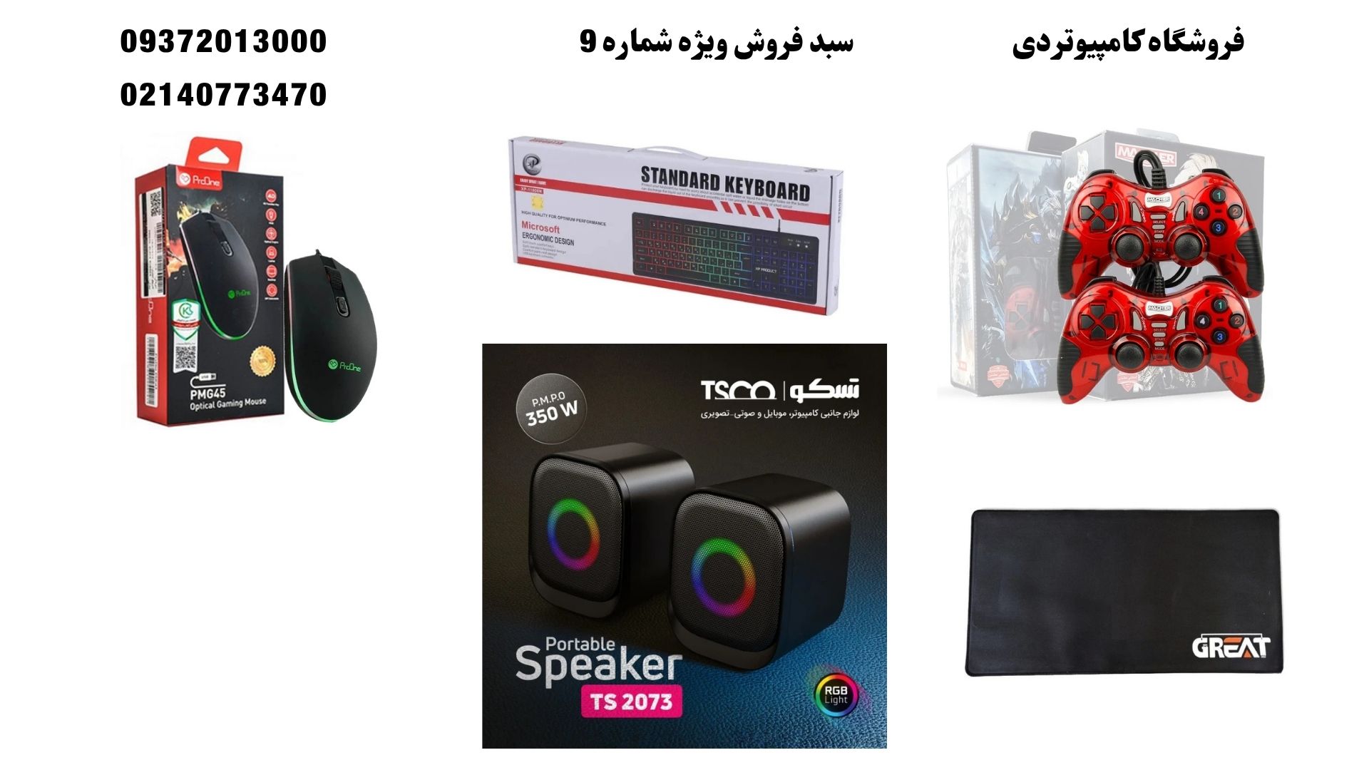 سبد خرید شماره 9 شامل(کیبورد گیمینگ XP/ماوس گیمینگ پرووان/دسته دوبل شوکدار فانتزی/اسپیکر دسکتاپ تسکو/پدماوس گیمینگ)