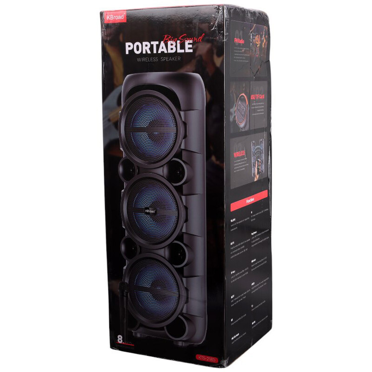 پس از سالها تجربه و تولید محصولات مختلف اینبار شاهد شاهکار بی نظیر شرکت ktsمدل جدید 2185 هستیم.این اسپیکر در سال 2025 به بازار جهانی عرضه و مورد استقبال مشتریان قرار گرفت.2185 یک اسپیکر با سه بلندگوی 8 اینچی و یک تیوتر یک اینچی میباشد که قادر به صدایی بسیار بلند و با کیفیت با حجم 4000 هزار وات اسمی می باشد.طراحی ظاهری این اسپیکر بسیار زیبا و ارگونمی می باشد که به راحتی قابلیت حمل و جابجایی را دارد.باتری درون این اسپیکر از ظرفیت بسیار بالای 4500 میلی آمپر برخوردار است که توانایی روشن نگه داشتن این اسپیکر را به مدت حداکثر 6 ساعت دارد.در قسمت فوقانی این محصول پنل کنترل کننده بسیار حرفه ای دیده می شود.همچنین در قسمت پشتی این محصول جایگاهی تعبیه شده که میتوانید با قرار دادن میکروفن بیسیم در آن از گم شدن یا اسیب دیدن میکروفن جلوگیری کنید.رقص نور این محصول نیز دارای قابلیت تغییر و خاموش کردن می باشد.نکته قابل توجه این اسپیکر میکروفون بیسم شارژی این محصول میباشد که کارکرد بهتری نسبت به مدل های باتری خور دارد.کل 2185یکی از بهترین گزینه ها ی خرید برای انتخاب یک اسپیکر برای داخل و خارج از منزل می باشد.